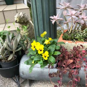 春の植え替えを少しずつ初めて 鉢減らしの為に大きな寄せ植えを作ってます( ´艸`) ちまちまな寄せ植えばかり作ってたから大きな物はバランスとか難しい…… まだ苗が足りないから未完成で全体は見せられないけど 途中を記録用にパチリ(^∇^)