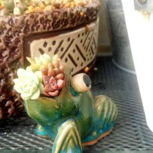 昔からうちにあった ムツゴロウの爪楊枝入れ? 使わないと言うので多肉植えてみました 大きなお口を開けて多肉食べてる( ´艸`)