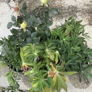 お花屋さんでおつとめ品ゲット❣️ ルピナス3ポット ガザニア ミニバラ しめて500円😊 早速植え替えました。