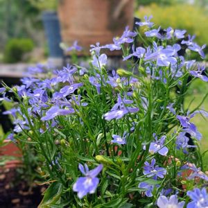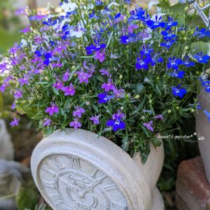 ロベリアレオン ブルースプラッシュ 多花性タイプ こんもりした株姿 とタグに書いてありましたがこんもりしませんでした😅 育て方が下手くそな私です😩トホホ
