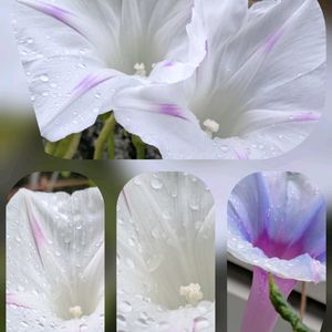 こんにちは⛅️ 昨夜⚡️☔朝方まで雨がふったりやんだり時々土砂降り☔でした・ω・ 昨日夕方水やりせずで大丈夫だった🤭 今日の朝顔💙花色が濃くなり美しい✨ 青色系の花たち♪♫♬