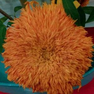 かわいい八重咲きのヒマワリ☀️ 種は真ん中の部分に少ししか できないのかな?