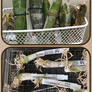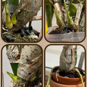 🌸タケノコラン 3 🌸 バルブの働きと芽の関係 水分栄養分を出来るだけ補給貯蔵するバルブを選択したカタセタムは成長するとそのエネルギーを利用して芽を出します🌸🌱 バルブの節目には潜芽が密かにありやがて脇芽(花芽、新芽、高芽)となって姿を表します🧐 ただタケノコランにも色んなタイプがあり🤔 一般的なカタセタム属はバルブに貯蔵された水分栄養分で芽を出しますが🧐 タケノコランでもガレアンドラ、グラフォルキルスなどバルブが細いタイプは貯蔵分が少ない分大気の湿度を上手く取り込める性質も持ち合わせているので湿度が常時保たれている環境を好みます 🧐 同じ細目のバルブタイプのシクノチェスは一代型でリードバルブはバックバルブから目一杯水分栄養分を吸収するのでバックバルブは枯れ易くなります😨 各品種バルブ形状、性質が微妙に違うのは自生地での環境に合わせて作り出されたものだと思われます🧐 花芽が上がる位置もバルブの上、中、下と違い茎の伸び方も下垂、横伸び、上伸びと様々です🌸
