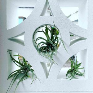 遮光カーテンがないため花ブロックの間で風に当てているチランジア。 5月末に500円で買ったチランジアに花芽らしきものがついてますが、未だにどのくらい水をやるのか、どのくらい日に当たったらまずいのかわからない😵