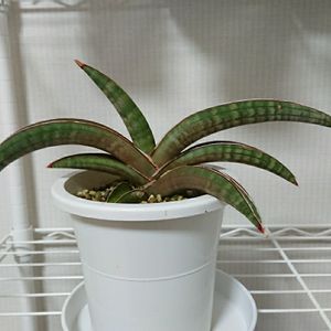 プフィステリー Sansevieria 'Pfisterii' サンスベリアには2大希少と呼ばれる『幻のサンスベリア』が存在します💡 ひとつは皇帝ことエイレンシス… もうひとつはこのプフィステリーです🤭 現在は幻といえど、ボチボチ流通しているようです🤔 サンスベリア界の大スターみたいなものでしょうか❓ 葉は硬くしっかりしていて、不気味な色をしています…👻 元々巨大なサンスベリアで、アンゴラの怪物なんて言われてます🦖 さて、かなり成長の遅いと言われる怪物くん… 立派になるまで何年かかるのか、末永く楽しみです🤭✨
