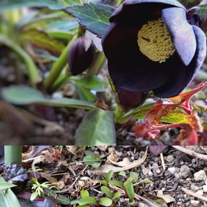 我が家に来て3年目クリローのブラックシングルさんが開花しましたが地面スレスレ咲きで去年よりかなり小さいです😂 隣にイエロー系セミダブルの子がいるんですが近くに去年こぼし蒔きした赤ちゃんが沢山出てきてます✨庭の誰かと交配のマネっこした気がするけど🙄 間引きついでに鉢上げもしてみようかなぁ🎵