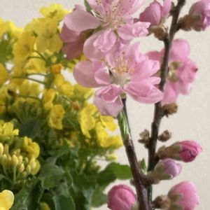 🎎おひなさま🎎アレンジ 桃の花もちょっぴり開いてくれました〜🌸