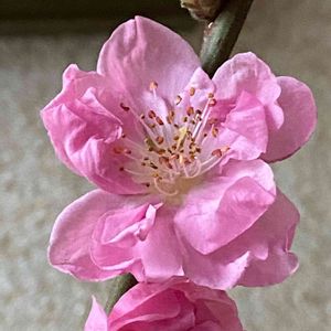 こんにちは😊花桃🍑、どアップにしました😃🎶 コンビニ帰り、ホテルロビーにて。 桃🍑大好きです