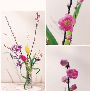 レッスンで持ち帰ってきた桃の花が開花して・・(๑˃̵ᴗ˂̵)💕 今週6勤が終わり、癒されたくてアレンジしました💦 まだ咲きそう・・(๑˃̵ᴗ˂̵)💕