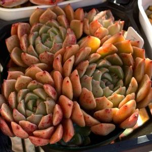こんにちは、今日もいいお天気ですね☀️ 今日の可愛こちゃんたち♬ 上はラウリンゼ×ロメオ❤️ 大好き同士の掛け合わせのコ❣️ ムッチリぷくぷくしてきました😍 朝日を浴びて可愛いーーーっ💓💓💓 下は札落ちして番号管理されてるコ♬ ムッチリしてお爪がツンツンして紅葉🍁の仕方がステキ😍 GWも5月も殆どフルタイムお仕事💦💦💦 多肉さん、🐶🐶🦜に癒されて頑張ろっと👊