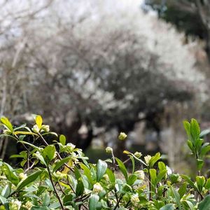 白花沈丁花が 大分咲いて来ています 向こうのお隣りの敷地の白梅も 未だ見事な美しさです 🏷蕾応援団