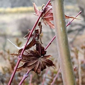 昨日モミジの新枝は早春に咲く花木の冬芽や蕾と同じようにアントシアニンに守られていて赤い…と教えて頂きました。なる程改めて見てみるとやはり赤いですね。これは家の他のモミジでも同じでした。蕾はお日様の力でクロロフィルを蓄えて、咲いてくると本来の花色を現しますが、この新枝の赤が消えるのはいつなのでしょう。 このモミジには秋に落葉した葉が引っかかって、未だ赤味を残していました。 🏷カサカサツアーより 🏷グリーンアクセサリー♪…にも