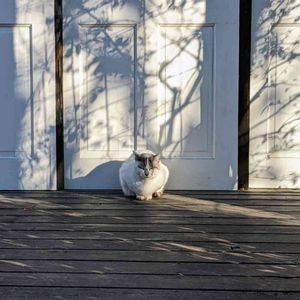 今朝、チロ助手と庭パトから戻って来ると デッキの扉に木々の影… そこはよく心得ている助手さん です。 🏷シルエット 🏷木漏れ日の木曜日 🏷グリーンアクセサリー♪ 🏷【額縁シリーズ】