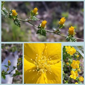 朝 チロ助手との斜面散歩… ヤマブキが素敵に咲いて来ました 一緒に植えてある白ヤマブキは遅いようです