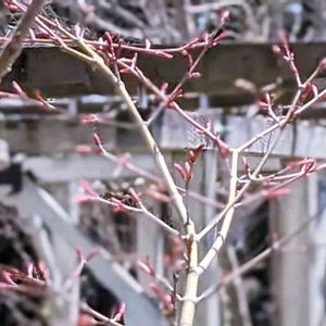 昨日 デッキ前の斑入りのモミジに赤い新葉が育っていました 🇺🇦🙏