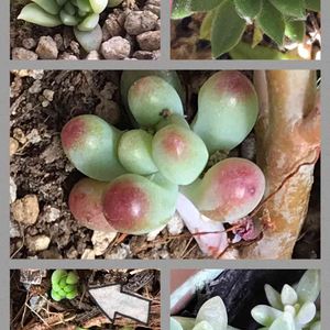 窓際の多肉植物の ニョキニョキ出てきた 芽をまとめてみました 左一番上のファンファーレ はこの状態のまんま じーっとしてます 左一番下は約2ミリ いくら撮っても ボケちゃいます アプリで調べても 名前は?です
