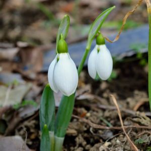 スノードロップ。 和名、待雪草(マツユキソウ) 日が当たると花が開き夜になると閉じます。 真珠のイヤリングのようで可愛いですね🤗💞💮💮