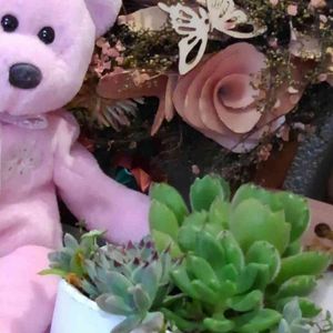 あらあ💖 私のお手々が一杯 もふもふ(*・ω・)で可愛い 半年前に植え込んだ多肉 熊童子さん🐻最初よりも 爪がはっきりしてます😃 我が家のくまの桜子さん この子も可愛いでしょ