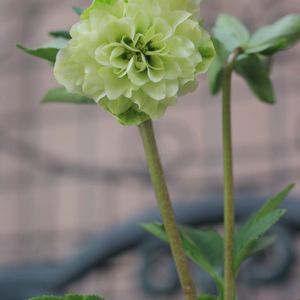 松村ナーセリーさんのリビダスマスカットです。有茎種の原種で、通常はあずき色の花を咲かせることが多いのですが、このマスカットは花、茎、葉がグリーンのものを選抜し作られた品種らしいです。蕾と咲きかけの花がコロンとしてまさにマスカット。松村さんのセンスと目の付け所に感心させられるお花です。