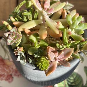 おはようございます♪ 今朝 名前の知らない細長い多肉ちゃん♬ 黄色💛のちっちゃ可愛い♡お花が咲いてるのに気がつきました🤗💡 お花、こんなにちっちゃいんだね〜 💛✨ まさか咲くとは思ってなかったのでサプライズでした‼️😆⤴️ 先月20日に町内のイベントで多肉寄せ植え教室に参加したモノです❣️ 参加費300円✨が魅力でした💓 鉢は限りなく地味でしたが…^^; 4番目が教室参加日の状態です♬ こんな小さな事で喜べる自分が愛おしいです😁😆🤣🫶 お名前わかりました💡 CHACHAさん💖が教えてくださいました! ムスコーサ(青鎖竜)です😉👌 ありがとうございます🫶
