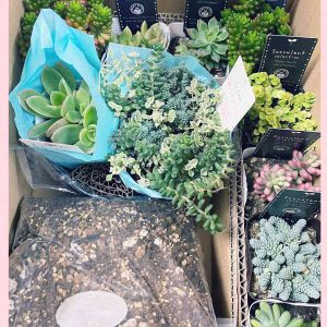グリーンテラス葉山さんの インスタ販売❣️ さっき届きましたぁ✨😆✨ 仕事行く前で良かった👍 沢山入ってて缶鉢も入っています😍 とても立派❣️ 寄せ植えにぴったり✨ とりあえずこのまま仕事に、行ってきます🚗³₃