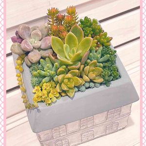 こんばんは😊 以前『グリーンテラス葉山』さんで買ったセットの中に、箱庭用のお家🏠が入ってたので作ってみました☺️ こういうのはあまり作った事がないのでどうやって植えたらいいのか〜いろいろ悩んで植え直し💦なんとか終わりました😅 難しいけど楽しい寄せ植え🎵 また可愛いお家🏠が手に入ったらチャレンジしてみたいです(๑˃͈꒵˂͈๑)💕
