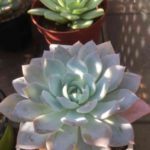 今日もめちゃくちゃいい天気~、で終わるかと思ったら、これから雨予報!? 3時半くらいから外が暗ーくなってきてびっくり(;^ω^) 今日の多肉はエケベリア ホワイトワンです♪ 先月グリーンテラス葉山からお連れした子だよ😊‼️ 相変わらずお美しいです……:;(∩ ˘ω˘ ∩);: 外葉が少しずつ、ピンクになってきました。 ずーっと見てられそう🤣✨✨