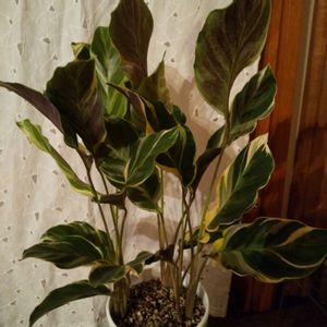 夜のカラテア 上に向かって立つ日と、だらんとしてる日がある… 何が違うんだろう?