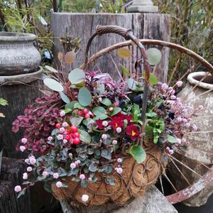 サビサビのカゴがあったんで、アレンジ作りましたよー😄✨ 秋らしい雰囲気を大事にして、 落ち着いた色合いでまとめました😆‼️