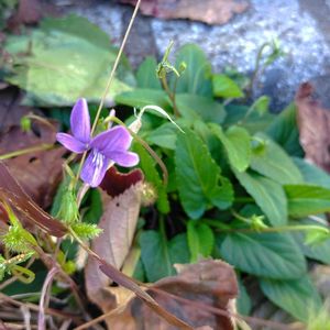 返り咲きのスミレちゃんに出会いました。 空き家になってるような古いお宅の玄関先に 落ち葉が吹き溜まり、ヨウシュヤマゴボウの実もなり、その傍らに 咲いてました。 何スミレだろう? コスミレ 小菫 かなぁ? と、思いましたが、 ケナシノジスミレと、わかり、下↓に追記しました 写真では 赤紫色っぽく見えますが、実物は 淡青紫色でした 側弁に毛はないようです 柱頭はカマキリの頭 閉鎖花もあるし、蕾もありますね 種子がビッチリ詰まった果実も見っけ。 葉っぱは長三角形~長卵形でギザギザがあり、先は尖ってない。 アレレ?葉柄に少し翼がある? 撮影 2025 11/24、11/29 職場近所の道端 …………………… 追記 すずはなさんから ノジスミレかなぁ? かしさんから ケナシノジスミレだろうと、教わりました。 ありがとうございました🙇 ケナシノジスミレ🏷️つけます 追記 ケナシノジスミレ 毛無し野路菫スミレ科スミレ属の多年草 ・ノジスミレが 本州(秋田県以南)〜四国、九州(屋久島以北)に分布するのに対し 本種は、暖地に多いようです ・ノジスミレの変種で、全体的に毛深いノジスミレに対して、このコは 葉っぱ、茎、距の毛が無い品種なので、ケナシなんですね。 ・気になる葉柄の翼ですが、ホンスミレの翼は広くハッキリしていますが、迷っていたコスミレには翼はありません。 ノジスミレ(ケナシノジスミレも)には 狭く目立たない翼があります。 ・春の花期、葉っぱはヘラ型〜楕円状披針形ですが、お花が終わって花のない時期は長三角形〜卵形に変化します。 私、この変化具合をよくわかっていませんでした。投稿されているケナシノジスミレの春と秋冬の葉っぱを見比べてみて、納得しました。 地上茎なし 側弁は無毛 柱頭はカマキリ形 葉裏は紫色を帯びることがある