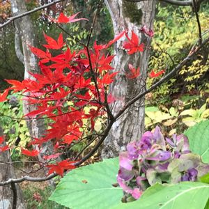 花見山便り❁¨̮ もう、ほとんど終わりの中で…🍁⠜ 紅葉ひと枝✨ 紫陽花ひと枝✨ 切り取ってみました❁¨̮