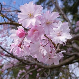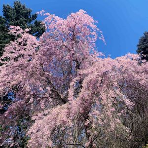 今日の八重咲き紅枝垂れ桜 青空に映えてとても綺麗でした🌸