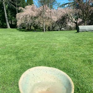 🌸Drinking sakura tea in front of Pink weeping spring cherry tree🌸🍃 満開の紅枝垂れ桜の前で、桜茶🌸🍵をいただきました😊💕 青空の下の真っ青な芝生の上で至福の時間でした😊💕 まだまだ大変な世の中ですが、平和に一日を過ごせる事に心から感謝です😊🌸🍃✨