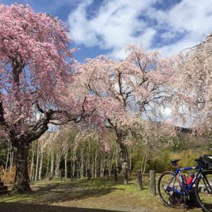 奈良県東吉野村 高見の郷の枝垂れ桜と和傘…🤗🤗 過去picです🤗🤗 桜の雨が降ってます🤗🤗