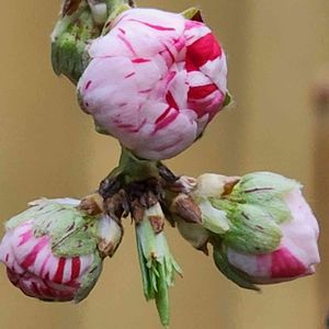 先ほどの花桃とは別のお宅 垂れている花が白、ピンク、斑入り しかもヒラヒラでかわいい❤ 目を奪われました😍 明日も見れるかな?