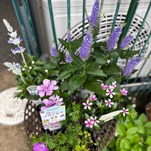 色んなお花を植えたよ🤗 メインは ベロニカロイヤルキャンドル🕯️ と ペチュニアヴェガ🌸 白飛びしちゃってるのは大福ちゃん マルコロッシ🍡 スクテラリヤとピンクフロストも 素敵ですの〜🤭 他にも色々植えた ウチ一の長角プランターから でした〜🤗🤗