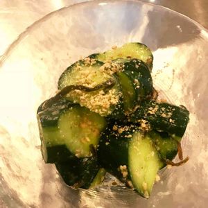 きゅうりを収穫しました。 今日はごま塩昆布和えにしました。