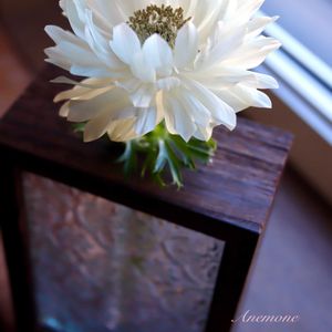 今日の花「アネモネ」 神花園さんの純白の八重咲き 雑貨屋さんで一目惚れした 一輪挿しに…