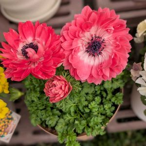 おはようございます☀️ 昨日お迎えした 神花園のアネモネさん ポルトダブルが3株🩷🩷🤍入って華やかで可愛いです🥰
