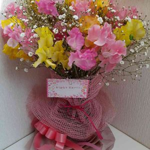 ありがとー😆💕 スイートピーのアレンジ花束をいただきました。 あらためて。。。 スイートピーって こんなにも いい香りがするんですね💕 廊下に優しい香りが漂ってます。