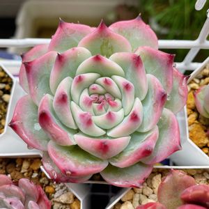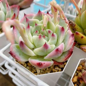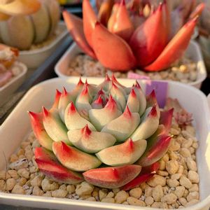 チワワリンゼだったかな?💦 👆🙅♀️ 👇🙆♀️ コロラータでした😅 なんか色が怪しぃ。。 去年の秋から雨晒しでも怖くないよう、粒大きくして水捌け最高の土にしてるんだけどな💦雨続きは、、やはり多肉にとってNGかな😓 下葉のブヨブヨは先日取り除いたけど、前の雨が葉に溜まってたのか、最近の春の太陽は強いので水吸った葉が茹だったのか、、 それらは取り除いたけど、緑が綺麗すぎる薄めの色合い😓 花芽は全部カットしたんだけどな😓 どうかご無事で🙇♀️