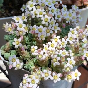 🏷️多肉のお花✨ 似たようなお花ですが🤍 pic 1 *マジョール* 文鳥ピッピちゃんの背中が〜(*´艸`) 可愛らしい姿に癒されます🤍 pic 2 *ミルキーウェイ* 初開花ですよ〜( ˶ˊᵕˋ)੭♡ 満開になったら可愛いだろうなぁ🤍 pic 3 *ヒスパニクム* ミルキーウェイとそっくりだけど…別名ってことないよね💦 実は… クリームソーダという名のセダムを購入したら、斑入りパリダムの別名と知りました…買わなくても沢山あるのに(>_<) pic 4 *プレビフォリウム* 遠征でお迎えしたIPPOさんの多肉です。 バラの開花も残すところあと1つなのですが、もう少しかかりそうです(-。-; . . 𖥧 𖥧 𖧧 ˒˒. . 𖡼.𖤣𖥧 ⠜ . . 𖥧 𖥧 𖧧 ˒˒. . 𖡼.𖤣𖥧 ⠜