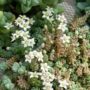 お花たち🥰 ラパスxシンフォロはセダム特有の白いお花が咲きました💐🤍