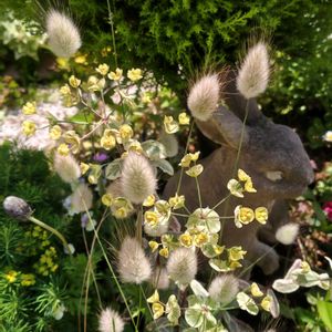 こんばんは(^ー^)☔️ 今年もダイソーで可愛いの見つけちゃった 穴開けて寄せ植えしました♡ 小人のマジョールがもりもりになるの楽しみo(*゚∀゚*)o うさちゃんの左前のパルメラが花みたいでお気に入りです🐰