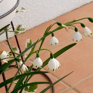 スノーフレークのお花が、今年も咲きました~✨小さくて白に、グリーンのアクセントが、たまらなく可愛らしいですねぇ~✨💓💚💓💚💓🎵