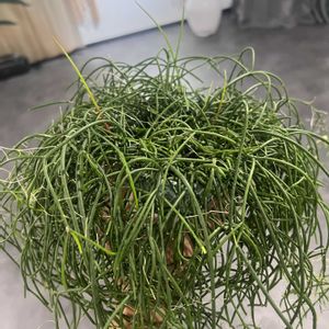 2019年秋にお迎えしてから 1回も切ってない リプサリス 🌿 カピリフォルミスかな? お迎えしたときは30cmくらいで 今150cmくらいあります𖤣𖥧𖥣。𖥧𖧧 まだ床には届いてないけど かなり邪魔😅 下のほう40cmくらい切ろうかなー🤔 もう土が古くなってて可愛そうなんだけど この長さじゃ植え替えも難しくて💦