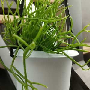 リプサリスの続き、 カピリフォルミス☺ カピリフォルミスさんは、一度根腐れだと思うけど半分駄目になって残った部分が元気になってきて今に至ります💖迎えた時よりも長くなって嬉しいです🥰