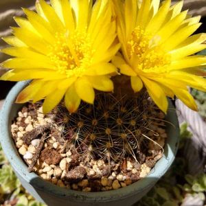 ミニサボテンの花が開花しました このサボテンは3年いるかな? 初開花です 元気をもらえる色で綺麗です