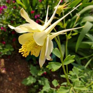 西洋オダマキ ヒラヒラの花びらがすごくお洒落 色合いも落ち着いてて好きな色 冬に苗を購入して咲くのを楽しみに してました 地植えにしたので、また来年も 咲いてくれるといいなと思ってます