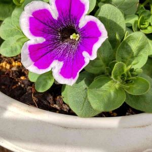 ペチュニア ヒッピーシックバイオレット ちょっとレトロな雰囲気の ペチュニアですね まだぽつぽつ咲きですが 沢山咲いたら可愛くなりそうな予感… もうしばらく待ちましょう